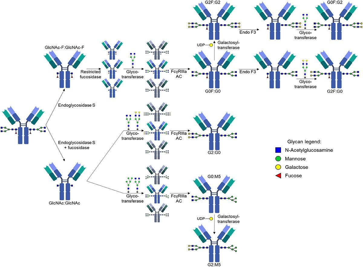 Figure 1. Schematic illustration of the stepwise generation of asymmetrically glycosylated rituximab variants.